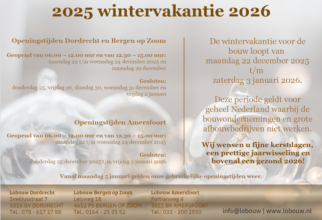 Wilt u meer weten over Lobouw? Op deze website vindt u veel informatie. Heeft u een vraag, opmerking of bijzonder verzoek? Bel of e-mail ons gerust. Wij staan u graag te woord.